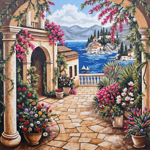 Stonecrafted Forest Stream in Autumn Premium  Tile Art Stone Mosaic Art
