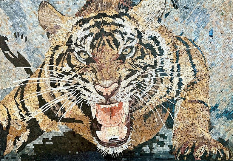 Fierce Tiger Roar- Mosaic Tiger Wall Art