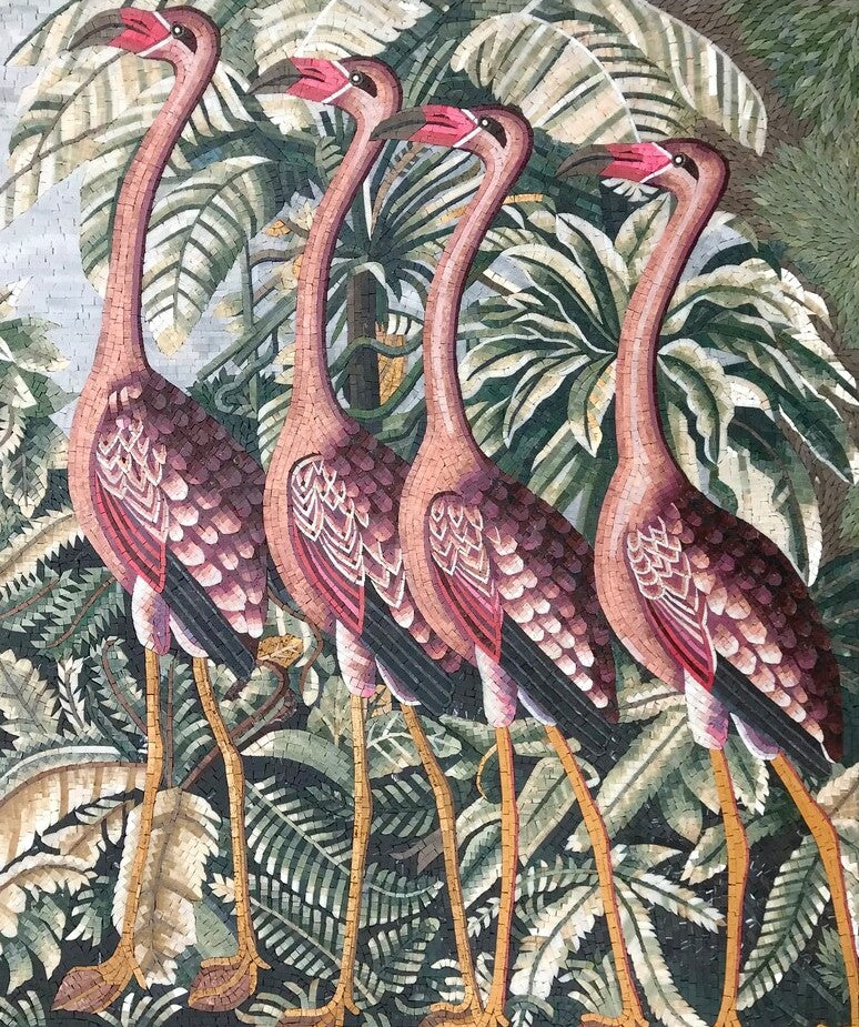 Graceful Elegance: Flamingos in Tapestry Mosaic Art