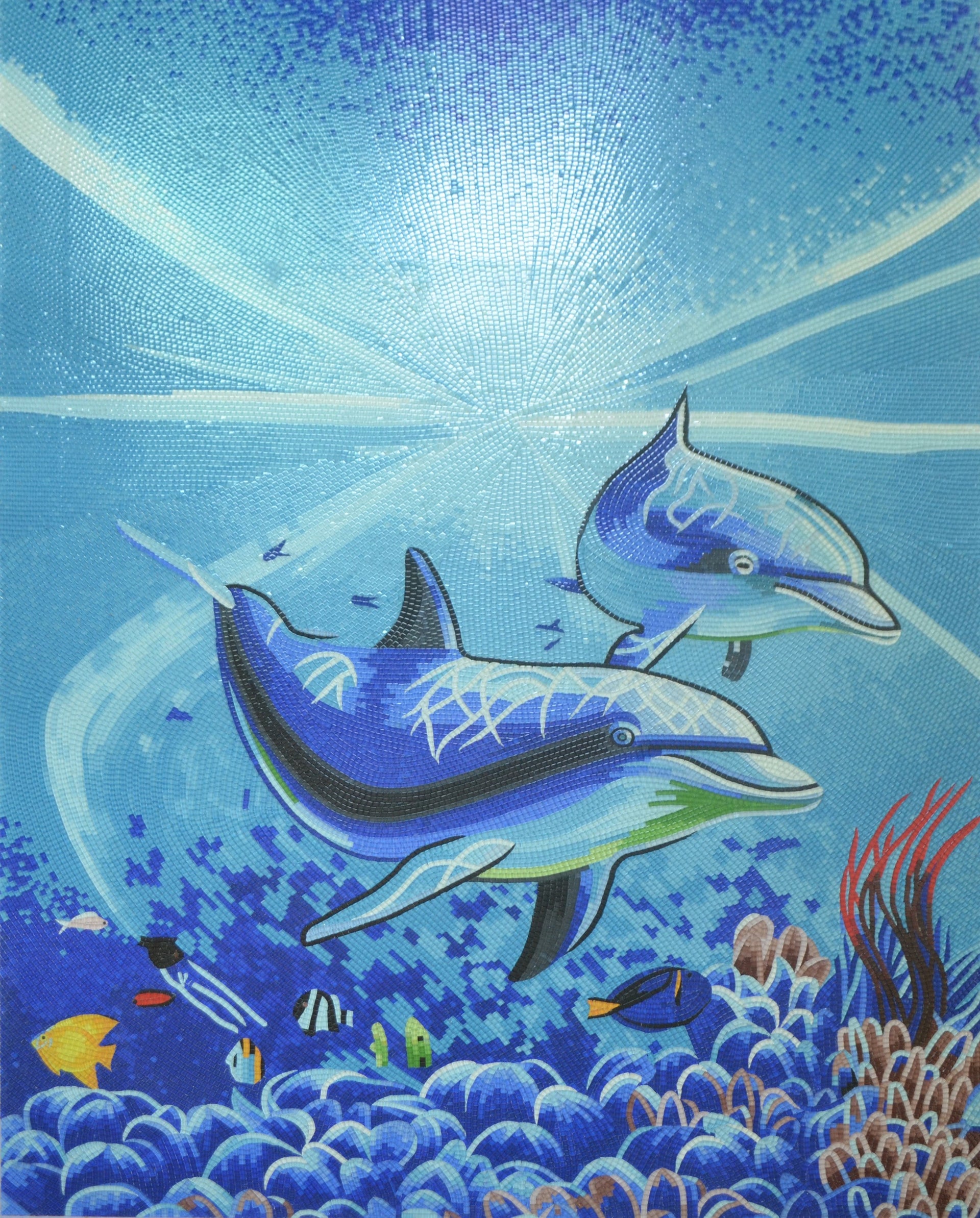Dolphin Dance Mosaic: Graceful Oceanic Art