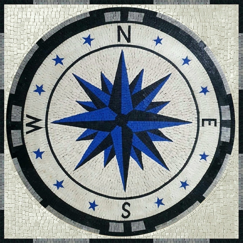 Tile Mosaics - Blue Marine Compass Art