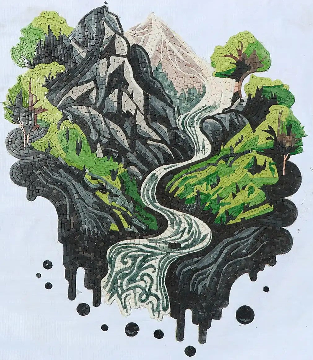 Pathway to Serenity: Handmade Mosaic Scene of Nature