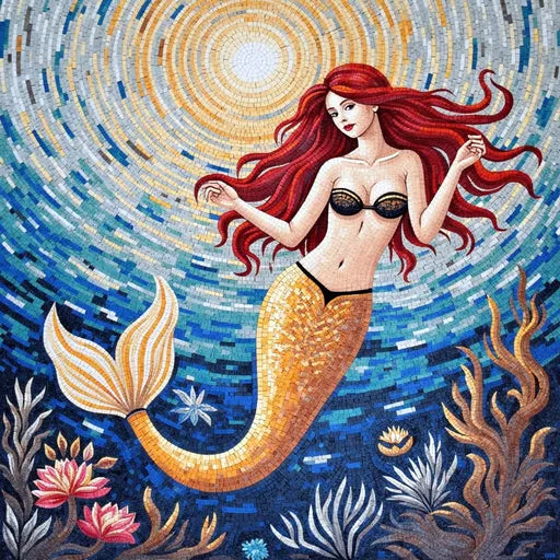 Golden-tailed Mosaic Mermaid - Mosaic Wall Art