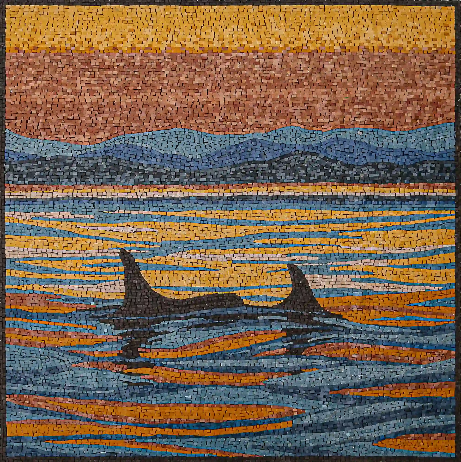 Sunset Waves: Mosaic in Sunset Hues with Shark